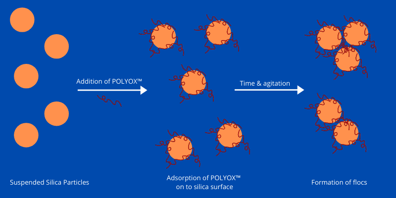 Oil and gas production creates waste water with large amounts of suspended solids that can pass through filters. Sedimentation of these contaminants often takes a large amount of time. Large amounts of water can be treated faster by adding flocculants, increasing sedimentation speed and making production more efficient.